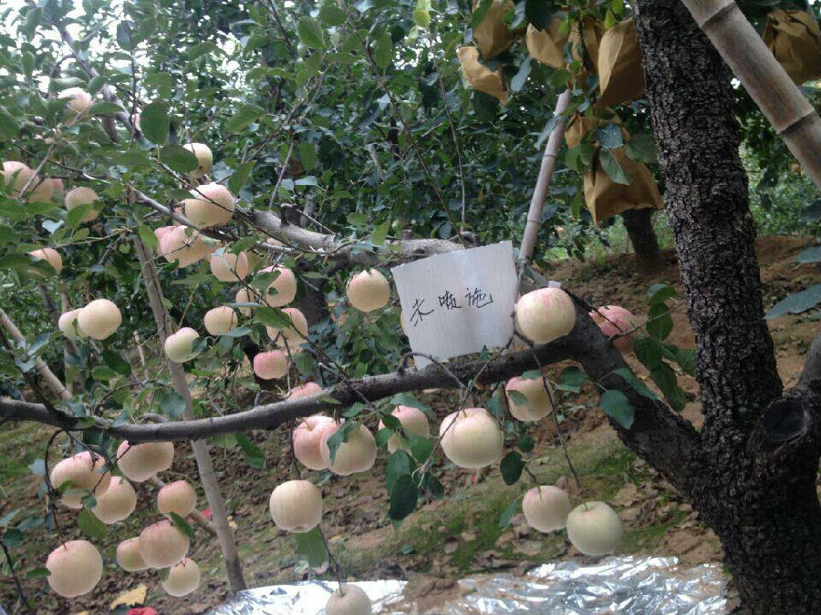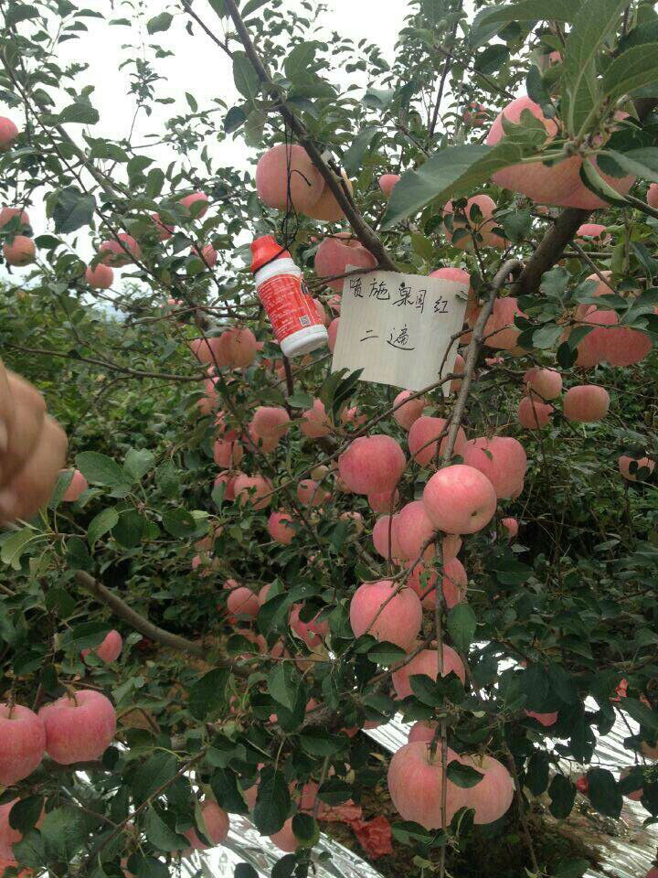 事情是这样的,前段时间,公司扩招,新近的一个同事,家是蓬莱徐家集镇兴隆庄村,他家在当地也算是果园种植大户,当时正好是烟台苹果临近摘袋前一个月的时候,从科学施肥的角度讲,恰巧赶上公司果园红产品使用的第一遍喷施时间,这是个很好的机会,于是他让家人间隔7天接连喷施了两遍,摘袋后又喷了一遍,总共三遍,下图是同事他老婆在家给拍的照片,并且很兴奋的说:
